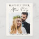Budget-friendly light cream elopement or private wedding announcement and reception or celebration party invitation that features your photo, "Happily Ever After Party" in simple typography and a chic modern script and your first names and wedding date. On the reverse side, personalize your message and reception details, input your wedding website address to create a QR code for your guests to scan for more information and to RSVP online, and add your names in a signature-like script.