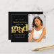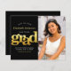 Make sure all your friends and relatives will be able to celebrate your graduate’s milestone graduation! Send out this stunning, simple, modern, personalized photo “Save the Date” budget announcement for an event to remember. Bold, graphic, faux gold foil typography overlays a black background. On the right hand side, add a photo of your choice. Personalize the custom text with your graduate’s name, class year and date. Your custom message and a faux gold foil graduation cap icon adorn the back. Matching invites, thank you cards, cap toppers, napkins, plates and other graduation goodies are also available in this trendy and stylish collection. Guaranteed to add stylish fun to their special occasion!