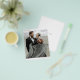 This modern photo wedding save the date flat card has a clean, minimalist design. The front features a single photo paired with a stylish font. On the back, I've included the date and location. I've set the background as transparent, so that the colour of the paper will serve as the base colour. You can choose a colour for the background, if you prefer. You can also edit the text to suit your needs. You might want to delete a text field that you don't need, or change the colour or font of some text. Use the intuitive design tools, your favourite photo and your inspiration to make this stylish wedding save the date flat card uniquely yours!