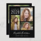 Budget-friendly black graduation announcement and party invitation with a 3 picture photo collage, "Graduate" in a stylish white script, and the grad's name, class year and school or university in modern white typography. On the reverse side, add an additional photo and your graduation party details.