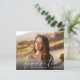 Elegant budget-friendly graduation party invitation featuring the graduate's photo overlayed with "graduate" in a modern white script and their name and class year in simple white typography. On the reverse side, add the graduation party details.