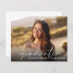 Elegant budget-friendly graduation party invitation featuring the grad's photo overlayed with "graduate" in a chic modern white script and their name and class year in simple white lettering. On the back, add your graduation party details. This budget semi-gloss paper is similar in weight to photo paper. A larger 5x7 traditional card stock version is also available (message us for the link).