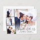Budget-friendly elegant elopement or private wedding announcement and reception invitation featuring your wedding day photo overlayed with a strip of three smaller square photos, "Celebrate With Us" in a modern script and your names, wedding date and location in simple typography. On the reverse side, personalize your marriage announcement and reception invitation and add your names in a signature-like script. This budget semi-gloss paper is similar in weight to photo paper. A larger 5x7 traditional card stock version is also available (message us for the link).