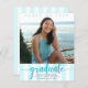 Be proud, rejoice and announce to the world that your favourite grad has reached their milestone with this stunning, simple, modern, personalized budget announcement invite. Sparkly, elegant, faux turquoise blue glitter calligraphy script, grey sans serif typography and a photo of your choice overlay a light turquoise blue and white striped background. Personalize the custom text with your graduate’s name, school name, class year, and graduation date. On the back, add your personal note, next school they’re attending, party information, etc. Guaranteed to add stylish fun to their special occasion!