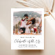 Chic budget-friendly elopement or private wedding announcement and wedding reception save the date announcement. The front features your photo, "Celebrate With Us" in a modern script, and your first names, reception date and location in simple typography. On the back, personalize your wedding reception save the date announcement and add your married names in a signature-like script.