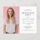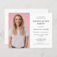 A value for money BUDGET alternative on a smaller size 4.5 x 5.6” semi-gloss 110lbs weight, which is of similar thickness to a postcard (however is not suitable to use as a postcard.). PLEASE NOTE there is ONE invite per sheet. Budget photo White Graduation Party Invitation A fully customisable minimalist design, simply replace the sample photo with your own and personalise the words to your details. You can also change the white background on both sides and text colour and style if you wish to better match your own photo via the Customize Further option.