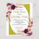 Budget blush pink and burgundy flowers with a gold frame decorate baby shower invitation.