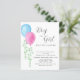 It features pink and blue watercolor balloons with eucalyptus and stylish script typography that says "Boy or Girl."
