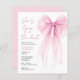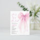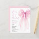 Elegant budget-friendly bridal shower invitation featuring a beautiful watercolor of a large pink coquette bow, "She's tying the knot" in a chic pink script, and her name and your event details in modern lettering.