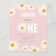 Chic Retro Pink Daisy Flower 1st Birthday Invitation
