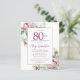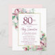 Elegant 80th Birthday Party invitation template features a gold frame and two arrangements of blush pink roses. All of text is editable.