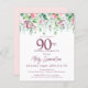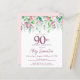 Elegant 90th Birthday Party invitation template features a gold frame and two arrangements of blush pink roses. All of text is editable.
