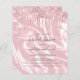 A chic, modern design featuring a pink silk or satin background with a top border of pink glitter drips. The words "bridal shower" and the name of the bride-to-be appear in lowercase calligraphy script with decorative swashes at the beginning and end, with the remaining text in sans serif font. The pink satin background and glitter drip border are repeated on the reverse. (To keep the swashes, replace only the letters of the bride-to-be's name, leaving the symbols in place.)