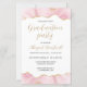 This trendy graduation party invitation features a top and bottom border of watercolor agate geode in shades of pink with faux gold glitter highlights. The words "Graduation party" appear in decorative modern gold-coloured handwriting font. Customize the invitation with the name of the graduate in gold, along with the school, class year and party details in charcoal grey on a white background. The back of the card is solid white.