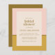 Celebrate a special bridal shower in style with this elegant invitation. Featuring a soft colour palette of blush pink and warm gold, this design combines modern minimalism with a sophisticated touch. Printed on a budget-friendly paper option, this invitation is perfect for a chic event that doesn’t compromise on quality. Personalize it with the bride-to-be's details to create a memorable first impression for guests. Ideal for stylish, contemporary bridal showers.