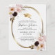 Budget Blush Pink Roses Grad Cap Gold Metallic Frame Graduation Party Invitation...Our affordable floral graduation party invitation features bouquets of beautiful blush pink roses curved around a gold metallic foil oval frame on an antique white background. Inside the geometric frame is a metallic gold cap and tassel followed by the invitation text in sans serif and script typography. All text can be easily revised on the personalization template.