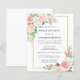 Pink roses and bright white hydrangea flowers are nestled in soft green leaves to create elegant floral arrangements that decorate a sparkling gold frame that surrounds your Bridal Luncheon details. This item is party of the Blush Pink and White Floral Bridal Shower Collection.