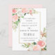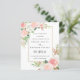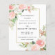 Pink roses and bright white hydrangea flowers are nestled in soft green leaves to create elegant floral arrangements that decorate a sparkling gold frame that surrounds your wedding details. The back is blush pink with a simple coordinating floral bouquet. This item is party of the Blush Pink and White Floral Wedding Collection.