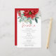 Budget Red Poinsettia Florals Rustic Mariage Menu. Une taille de 5,5 po x 8,5 po de grande valeur dans une gamme de choix de papier. Une typographie informelle pour le titre principal Menu complétant le reste du texte que vous pouvez facilement personnaliser, avec de belles fleurs hivernales et feuillage en haut.