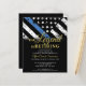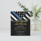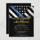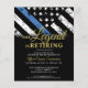This design features a police force flag with black and white stripes, and a thin blue line stripe as well. "The Legend is Retiring" text sits above all of the party details for the retiring law enforcement officer, sheriff, captain, or chiefs retirement party details.