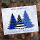 Send Merry Christmas greetings to friends and family with this Unique Police Christmas Card - Thin Blue Line, black and blue plaid and blue glitter trees on a silver snow glitter background design . Personalize with family name.. This police Christmas card is perfect for police families or police department christmas cards. These budget merry christmas postcards need to be mailed as oversized postcards so may incur standard postage fees but they don't need an envelope or a return address label. COPYRIGHT © 2020 Judy Burrows, Black Dog Art - All Rights Reserved. Budget Police Christmas Blue Plaid Glitter Holiday