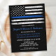 Thin Blue Line Police Retirement Invitations or Police Graduation Party Invitations. Celebrate years of dedicated service, or celebrate your new police academy graduate, and invite friends and family to your law enforcement party with this rustic wood Thin Blue Line Flag Police Retirement Invitation and Police academy graduation invitations - USA American flag design in Police Flag colours, distressed design.This police officer retirement invitation is also perfect for police academy graduation invitations, change venue in personalization. These budget police retirement invitation cards are an alternative to free police retirement invitations . See our collection for matching police retirement gifts, police graduation gifts,party favours, and supplies. COPYRIGHT © 2021 Judy Burrows, Black Dog Art - All Rights Reserved. Budget Thin Blue Line Police Officer Retirement