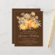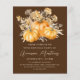 Elegant watercolor orange pumpkins are nestled in a variety of fall foliages and flowers. A dark, rich brown background frames it to perfection. Perfect for an autumn celebration. All text is editable.