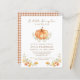 Celebrate your soon-to-be fall baby with your friends and family to share in the joy of your little one's arrival with this baby shower invitation, featuring a watercolor pumpkin, fall foliage, and an orange brown plaid pattern on the back.