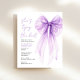 Elegant budget-friendly bridal shower invitation featuring a beautiful watercolor of a purple coquette bow, "She's tying the knot" written in a chic purple script, and her name and your event details in modern lettering.
