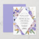 Pretty purple and blue flowers decorate a modern diamond frame. Gold leaves add a touch of glam.