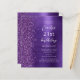 The left-hand edge of this modern birthday party invitation features a purple faux glitter border. The customizable text combines white script and sans serif fonts on a purple faux brushed metal background. The reverse side features a matching design.
