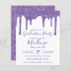 BUDGET Purple Sparkle Glitter Drips Graduation Party Invitation featuring faux glitter drips on a chic white background. Designed by Cedar and String. To personalize further, please click the "customize further" link and use the design tool to modify the design. **Our BUDGET paper is smaller and more delicate, but still beautiful!** If you need assistance or matching items, please contact us at cedarandstring@gmail.com.