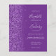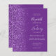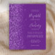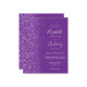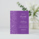 The left-hand edge of this elegant modern wedding invitation features a purple faux glitter border. The customizable text combines pale lilac handwriting, copperplate and italic fonts on a purple background. The reverse side features a matching design.