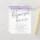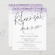 A budget price SMALLER 4.5” x 5.6” alternative. Available in a SEMI-GLOSS 110 lb CARD STOCK which is the default option (thicker for invitations), OR a SATIN FINISH 80 lb THINNER PAPER STOCK (ideal for enclosures). Envelopes are an optional extra and are slightly larger than the card size, This modern design has elegant informal set script for Rehearsal Dinner and a border of purple faux glitter at the top on each side. The rest of the typography you can easily personalise. You can also change text and background colours on either side if you wish via the Customize Further option.