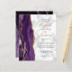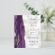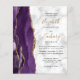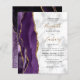 The left-hand edge of this elegant modern wedding invitation features a purple watercolor agate border trimmed with faux gold glitter. The customizable text combines gold coloured handwriting with black copperplate and italic fonts on a white and grey marble background. The reverse side features a matching purple and gold agate design. NOTE: Envelopes are not automatically included with these budget invitations, so please remember to choose the "white envelopes" option!
