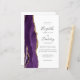 The left-hand edge of this elegant modern wedding invitation features a purple watercolor agate border trimmed with faux gold glitter. The customizable text combines handwriting, copperplate and italic fonts in charcoal grey on a white background. Add additional details on the back, along with a QR code to help your guests visit your wedding website.