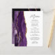 The left-hand edge of this elegant modern wedding menu features a purple watercolor agate design trimmed with faux gold glitter. The customizable text combines charcoal grey handwriting script and sans serif fonts on a white background. The purple and gold agate design is repeated on the reverse side.
