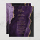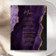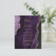 This elegant modern wedding menu features a purple watercolor agate border trimmed with faux gold glitter. The customizable text combines gold-coloured handwriting script and copperplate fonts. The reverse side features a matching purple and gold agate design.