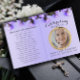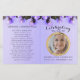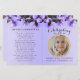 Customize this modern, elegant funeral program with your own photo and text to create a special tribute to your Beloved. An 'In Loving Memory' program featuring a Floral Purple rosy with gold accent memorial program. On the front cover is a photo of your loved one, their name, dates, the memorial venue, and the date of the event. On the inside is an obituary and order of service, and on the back is a thank you note and the venue of the