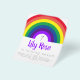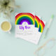 Invite friends and family to celebrate your child's birthday with this bold rainbow party invitation.