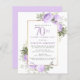 Honour a special woman with this elegant and feminine 70th Birthday party invitation. 70th is written in large purple text. Birthday Surprise Party follows. The honoured guest's name is also in purple capital letters. The remainder of the text is soft dove grey. The 70th birthday celebration details are surrounded by a chic gold frame that is decorated with purple roses and sage green leaves. While it is a traditional design, the open and airy botanical foliage and text give it a contemporary vibe. The invitation back is a soft purple. Unfortunately, the 70 numerals are not editable. If you need another year, I will be happy to make a custom design for you.