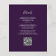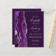 The left-hand edge of this elegant modern wedding invitation features a purple watercolor agate border trimmed with faux silver glitter. The customizable text combines handwriting, copperplate and italic fonts in silver grey on a deep purple background. The reverse side provides space for wedding details on a solid purple background, along with a QR code guests can scan to visit your website and RSVP.