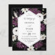 Hand painted purple, white, and lavender florals and greenery in watercolor on a purple background bring your wedding invitation to life. It's luxe and printed with high quality by professional level printers.