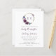 This wedding design features the bride and groom's monogram initials in dark purple framed by a watercolor wreath of purple flowers on a gold faux foil circle. Personalize the text with the couple's names in elegant dark purple handwriting script and the wedding details in charcoal grey. The reverse side provides space for wedding details on a solid white background, along with a QR code guests can scan to visit your website and RSVP, which saves the cost of printing and mailing separate RSVP cards.