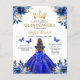 Celebrate your special day with the Floral Royal Blue Butterfly Princess Quinceañera Invitation. Featuring a stunning royal blue backdrop adorned with delicate floral accents and enchanting butterflies, this elegant design captures the beauty and grace of a quinceañera. Perfect for a princess-themed celebration, the invitation combines timeless charm with a modern touch. Invite your guests to join in the magical festivities, marking this unforgettable milestone with an invitation that reflects the elegance and sophistication of your quinceañera celebration.