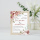 BUDGET terracotta watercolor flowers floral beige fall wedding invitation with QR code to RSVP. It features bouquets of flowers in terracotta brown tones on the corners while your text is placed in a white frame with a beige border. The back includes floral garlands on the upper and bottom parts and the QR code.