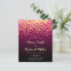 Sparkling lights in the sky burgundy red winter night wedding invitation with QR code to RSVP that showcases white and pale yellow yellowish lights that sparkle on burgundy gradient background.