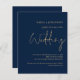 There are two paper options to choose from for this size (4.5 x 5.6”) in the Budget range. For this product, I would recommend the semi-gloss which is a 110 gsm card stock, similar in thickness to a postcard. The Satin option is a much thinner paper 80gsm. The default is set to semi-gloss. PLEASE NOTE there is ONE per sheet. Budget QR code Navy Blue Gold Typography Wedding Invitation. Add your QR code to your wedding website on the back makes this a convenient option for your guests to RSVP and see all the details without the need for separate RSVP and details cards. Minimalist typographical style, with a set handwritten script for Wedding and the rest of the text you can easily personalise.