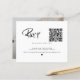 Less hassle, no missing mail when you invite your guests to RSVP online with your QR code that sends them directly to your wedding website. The design features a minimalist, simple black and white creative with a modern very elegant calligraphy RSVP script. Easily replace with your own QR code, and replace your best photo, and your personal information of choice. There are QR code generators online if needed. Simply place the keywords "QR code creator" into Google search and lots of free options will appear for you to choose from.