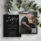 Elegant trendy BUDGET photo wedding invitation with "the wedding of" white text and black background featuring a chic calligraphy script and your QR CODE (automatically generated). Personalize it with your engagement photo on the backside and your text. ++++++++++ This timeless wedding invite is suitable for modern style formal wedding ceremonies and receptions. +++++++++++++++++++++++++++++ PLEASE READ THIS BEFORE PURCHASING! This is a budget affordable wedding card printed on a paper sheet (each sheet has one card). ++++ For the best rapport price-quality, our advice is to choose the Semi-Gloss paper type (it is thick enough to be used for stationery) ++++ If you need envelopes, choose the ENVELOPE OPTION. +++ Double-check all the information and spelling of your text because you will receive exactly what you see - no one else will check anything before printing. ++++ This card is designed for size 4.5" x 5.6". In the case you choose another size of the card and text goes outside page, everything needs to be fixed before adding the product to cart. Please ask Live Design Service for help.